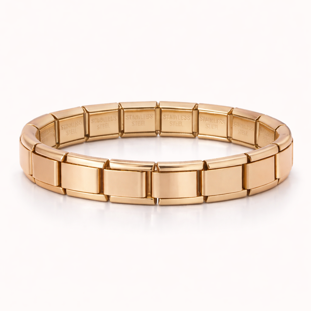 - 1 bracelet extensible en acier inoxydable couleur or rose (18 maillons de 1 cm)